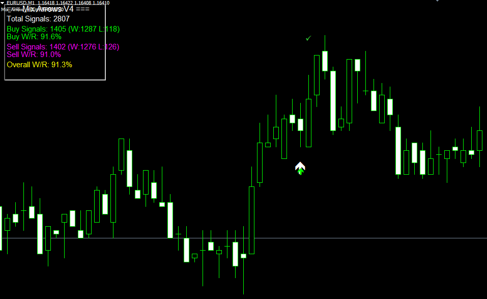 У этой прокладки задаётся текст на которой она ставит на график свою стрелку. На примере индикатора «!Mix_Arrows_V4» это выглядит так.